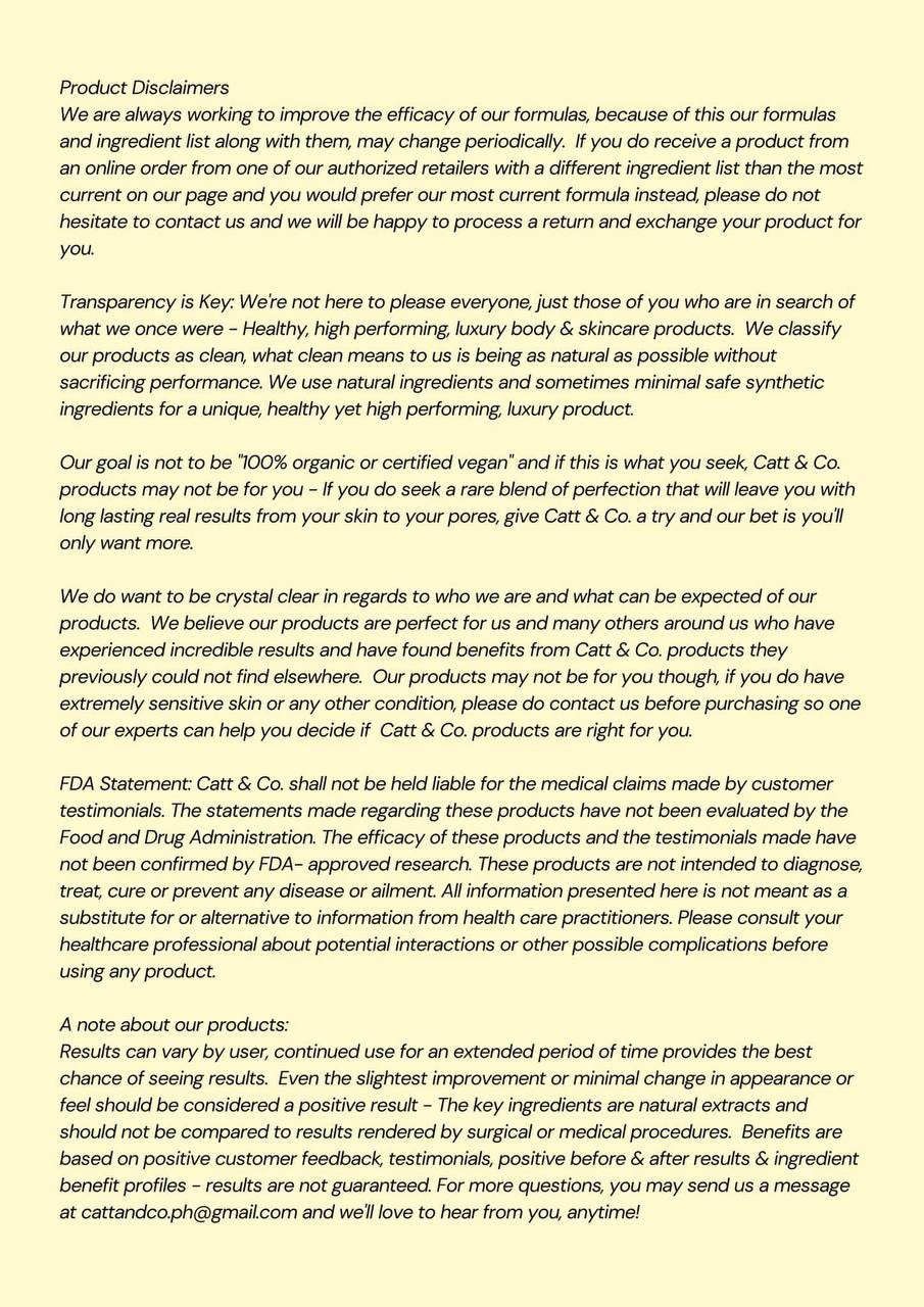 Manufactured for: Catt & Co. Cosmetics and Skin Care Products Trading Angeles City, Pampanga 2009 MADE IN THE PHILIPPINES