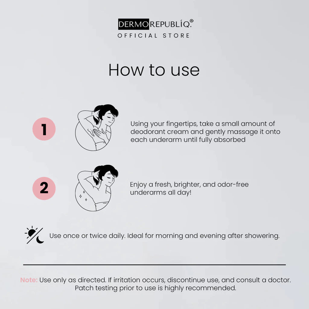 This effective formula combines Alpha Arbutin, Mulberry Bark Extract, and Cherry Blossom Extract to target pigmentation and promote a more even tone. Infused with Niacinamide to boost brightness and Allantoin to soothe irritation, ensuring comfort with every application. This cream also provides antibacterial benefits and keeps your underarms fresh and odor-free with Tea Tree Leaf Extract.