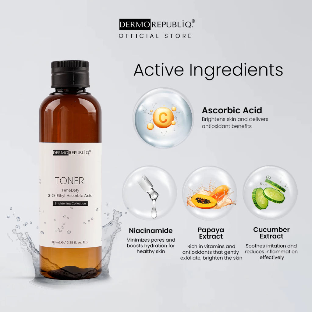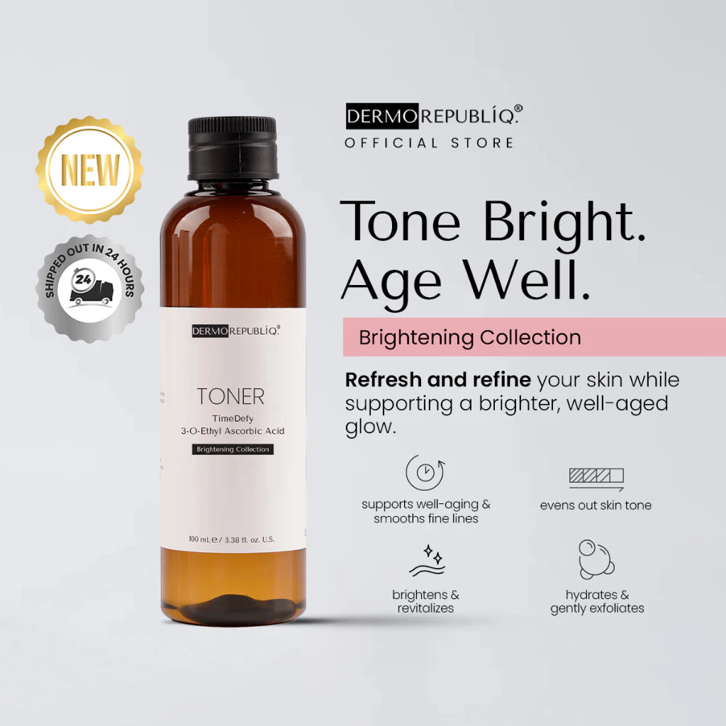 Get that Fresh and Youthful Glow with our TimeDefy 3-O-Ethyl Ascorbic Acid Brightening Toner!