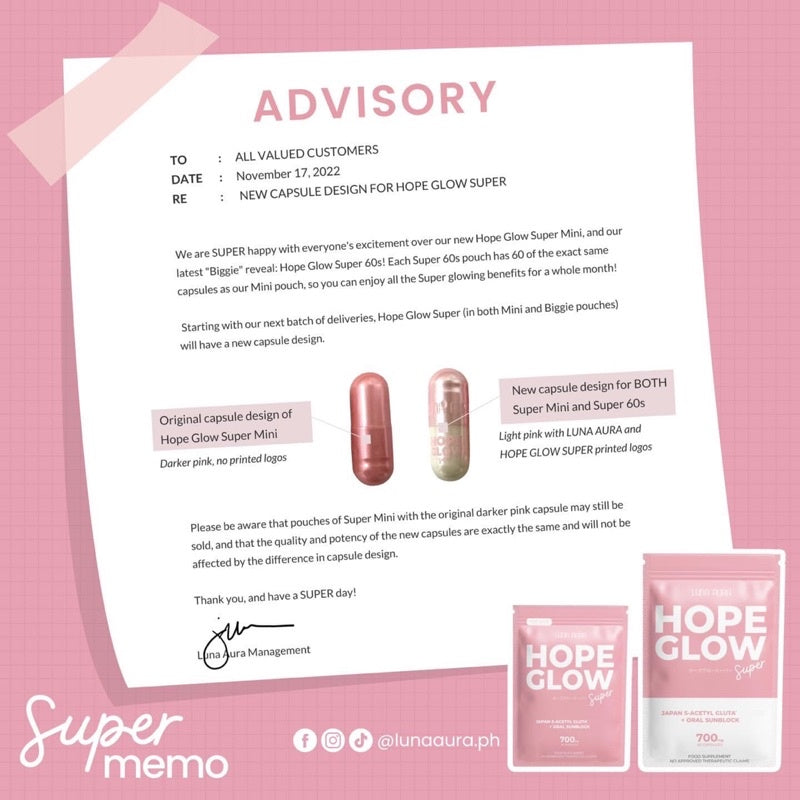 Get to know more about our new Hope Glow Super. MORE GLOWING GOODNESS in every capsule with 700mg of our proprietary blend of active ingredients!