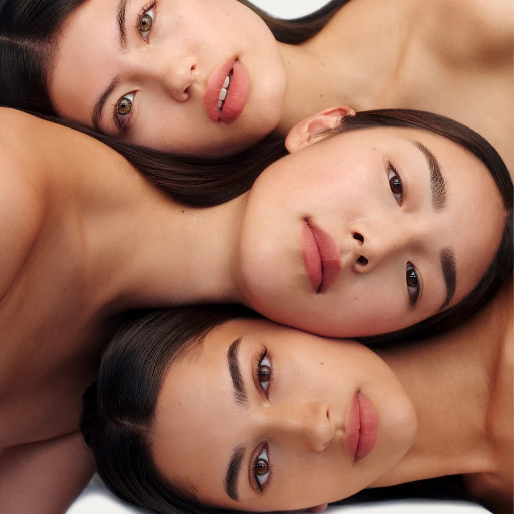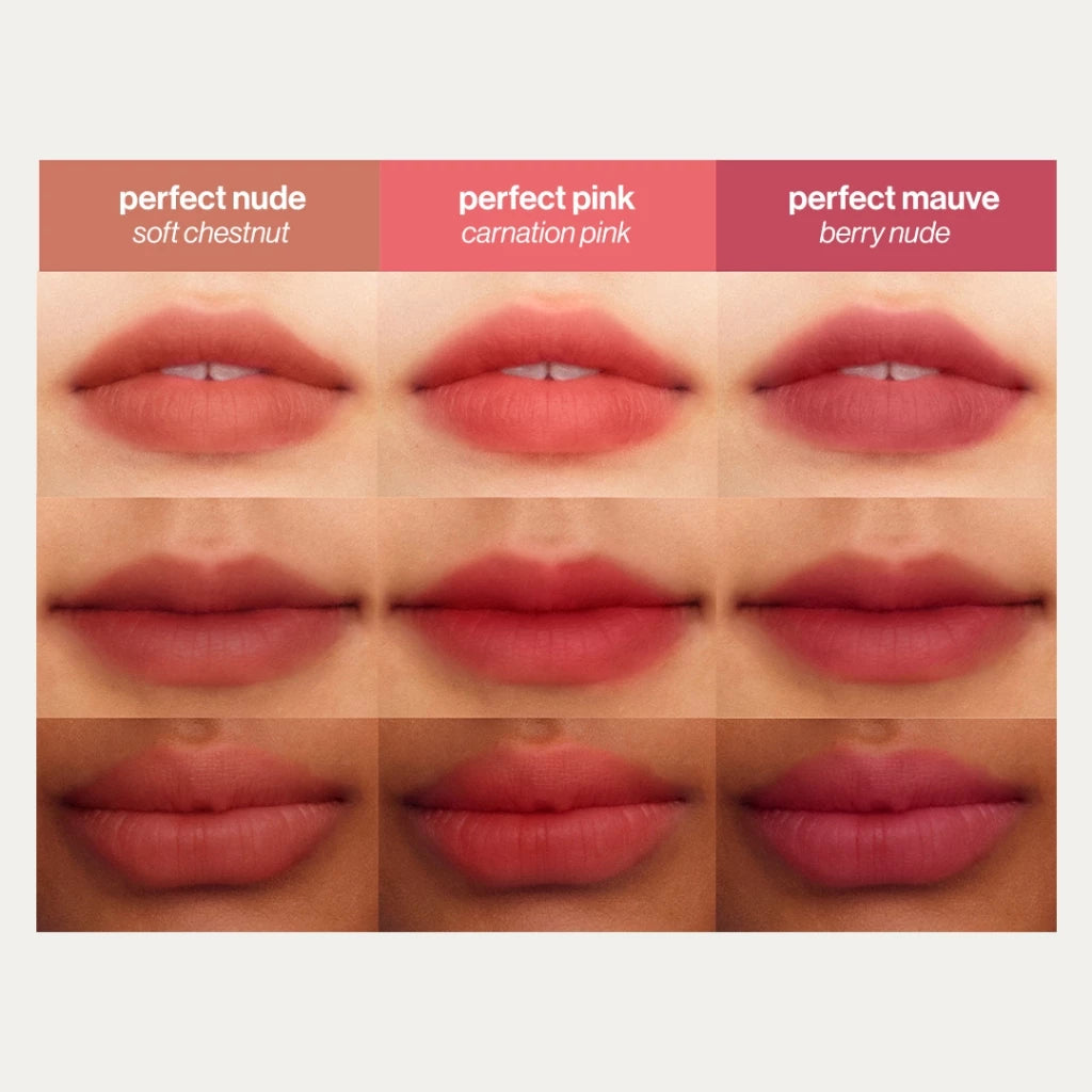 Fluffbalm gives you an instant blotted lip look in one easy swipe. The lipstick meets balm hybrid is super comfortable on the lips, comes in three easy-to-wear shades for a casual wash of color — perfect nude, perfect pink and perfect mauve.