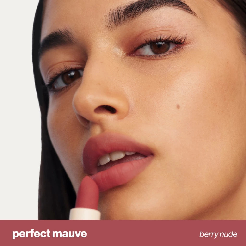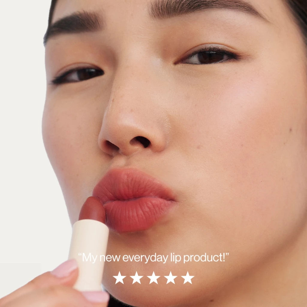 A moisturizing matte blotted lipstick for a soft-blurred lived-in look.