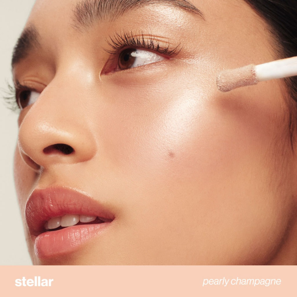 A light-catching liquid highlighter infused with skincare actives that nourish your skin while delivering an ethereal, soft-focus glow.