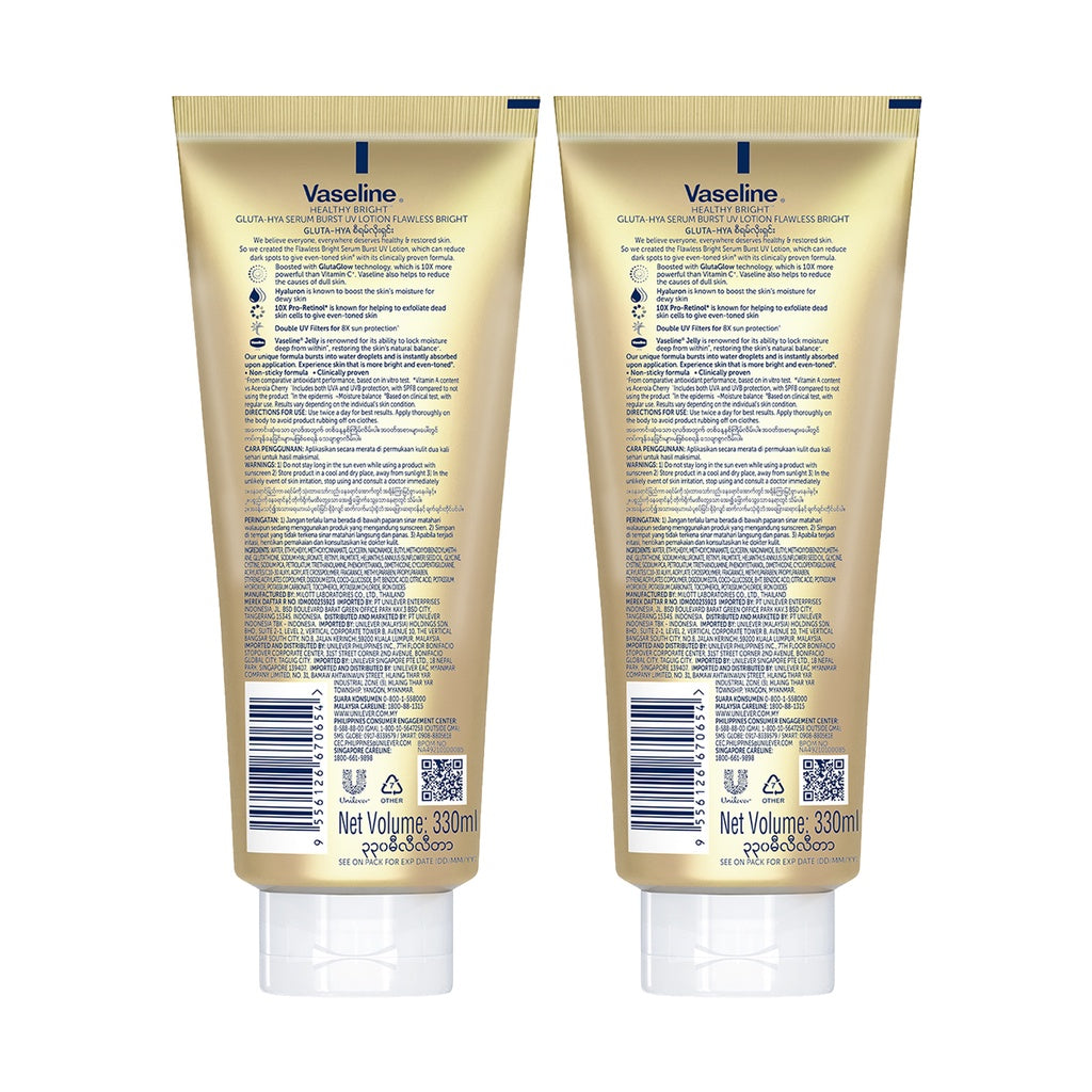 Vaseline Gluta Hya Serum Burst Lotion Flawless Bright 330ml x2