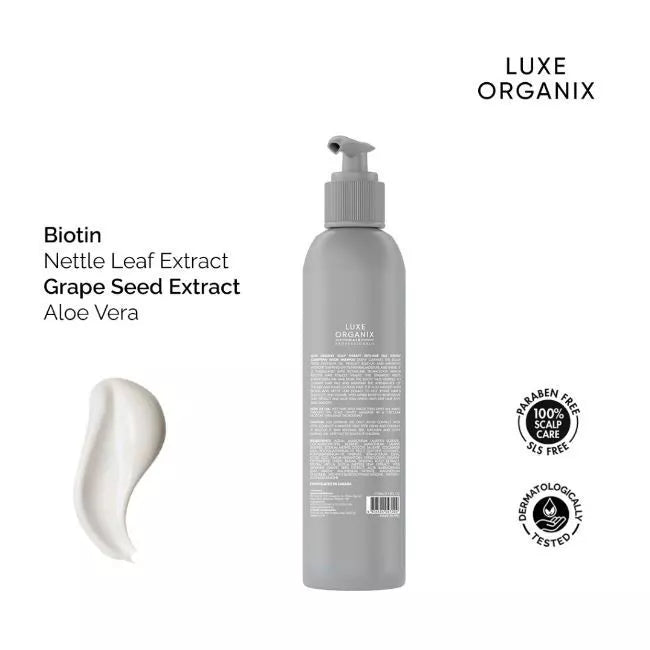 Luxe Organix Scalp Therapy Anti-Hair Fall Gentle Clarifying Detox Shampoo deeply cleanses the scalp from excessive oil, product build-up, and impurities without stripping off its natural moisture and shine. It is formulated with Active Care Technology which boosts hair follicle vitality. This shampoo helps strengthen the hair from the roots thus helping to combat hair fall and maintain the appearance of thicker and fuller-looking hair. It is also infused with Biotin and Nettle Leaf Extract to help revive hair’s elasticity and volume. With added benefits from Grape Seed Extract and Aloe Vera which helps keep hair soft and smooth.
